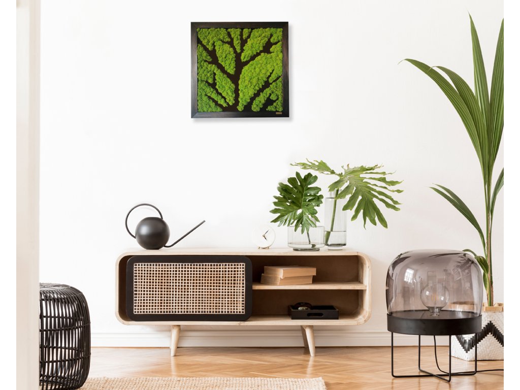 Tento machový obráz z našej dielne je vyrobený z kvalitného sobieho stabilizovaného machu. Jasnou farbou koruny osvieži každý interiér. Mäkký svetlozelený sobí mach vypĺňa všetok okolitý priestor orámovaný tmavohnedým rustikálnym rámom. Drevený rám je upravený ekologickým voskom na drevo.